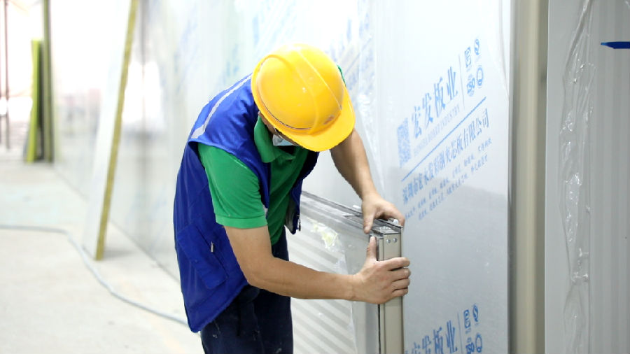 深圳市艾特普光电科技有限公司总经理盛军辉说:“现在装修进度完成约50%,墙壁主体、吊顶已基本完成,目前门窗安装、照明设备用电布线、空调安装等在同步进行,待这些完成后再做地面净化处理,力争本月底完工并交付使用,预计五一期间进行工厂迁入。”